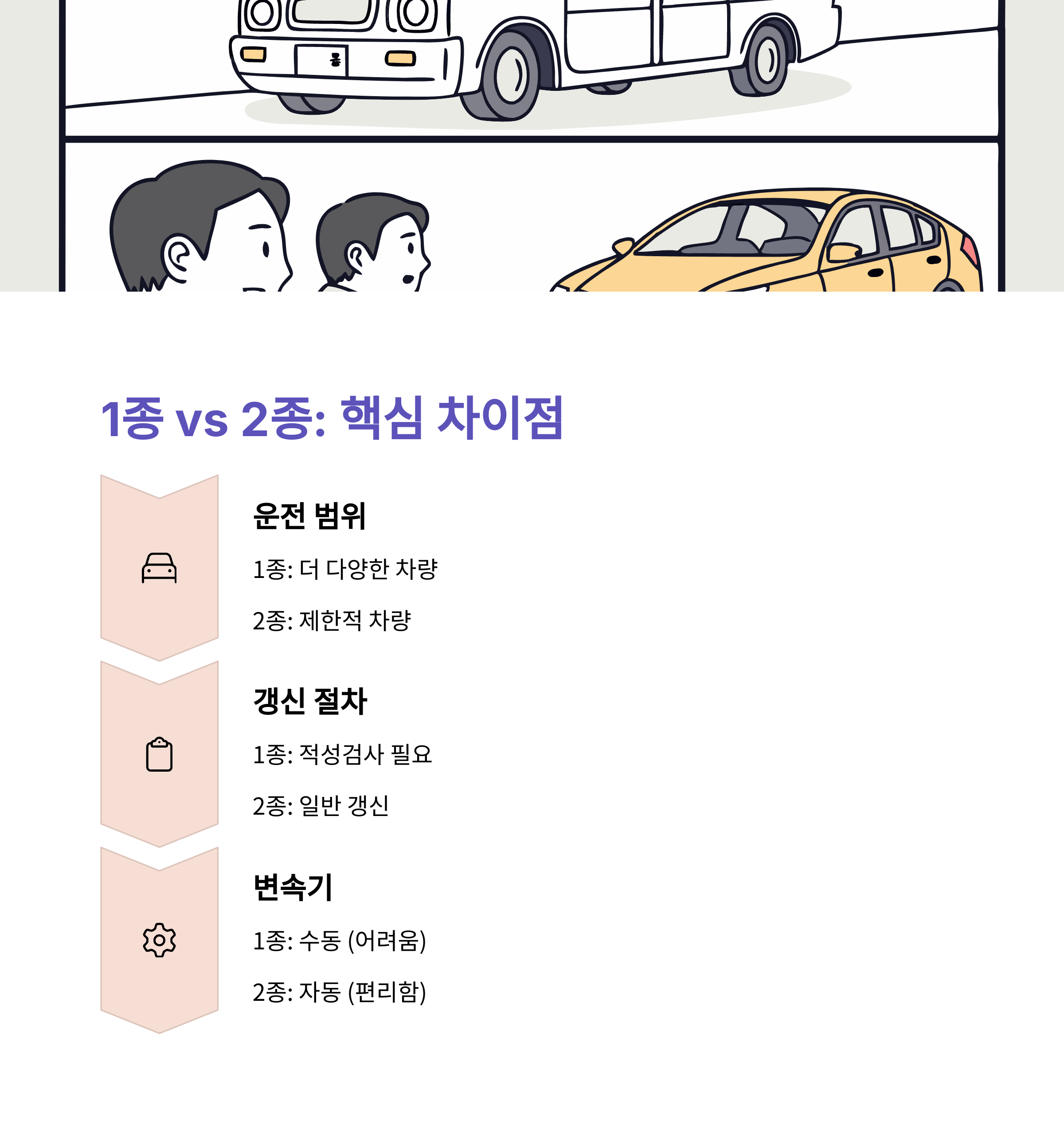 1종과 2종 면허 차이점, 취득 나이와 운전 가능한 차량 정리