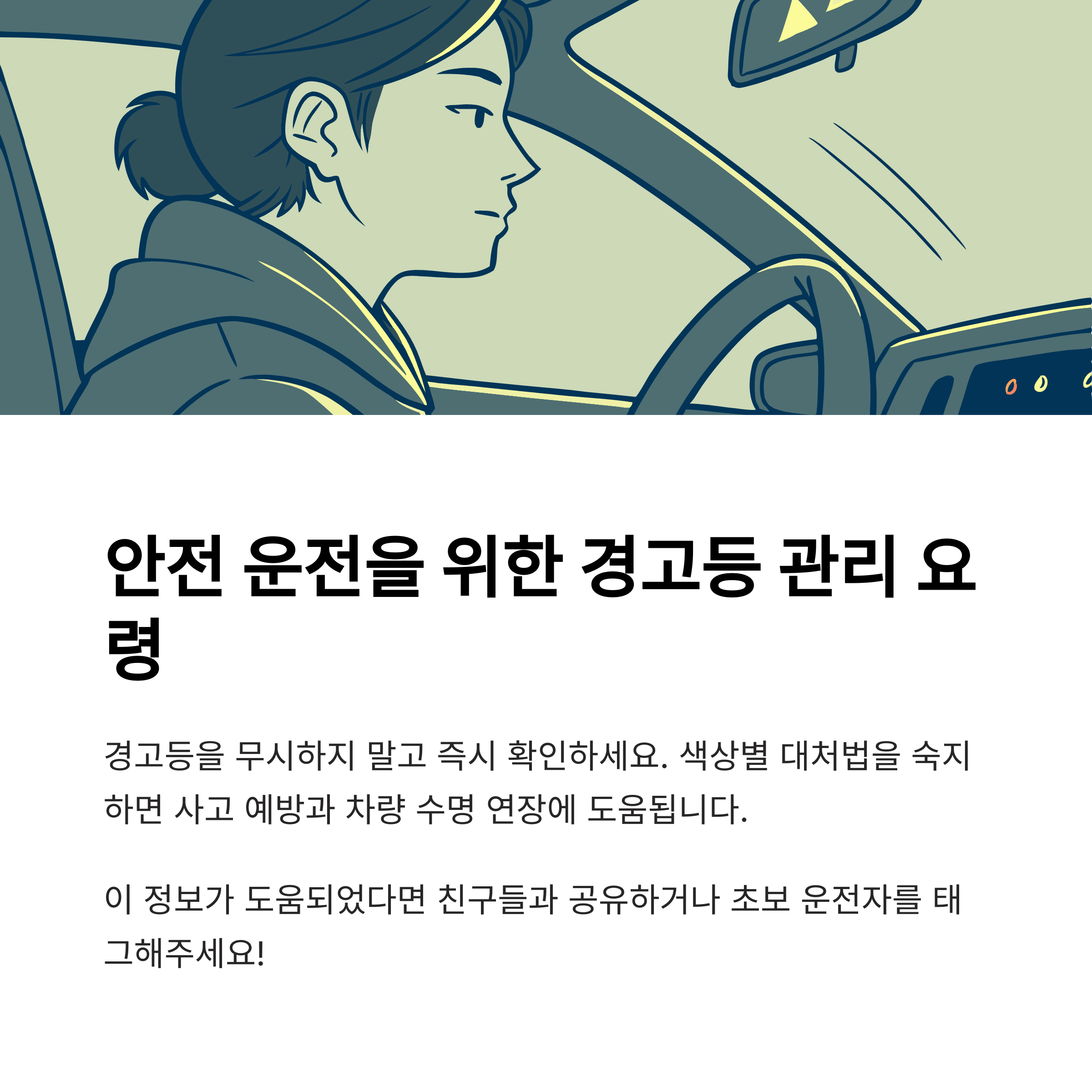 경고등의 역할은 차량의 잠재적 문제를 조기에 감지해 심각한 상황을 예방하는 데 있습니다.