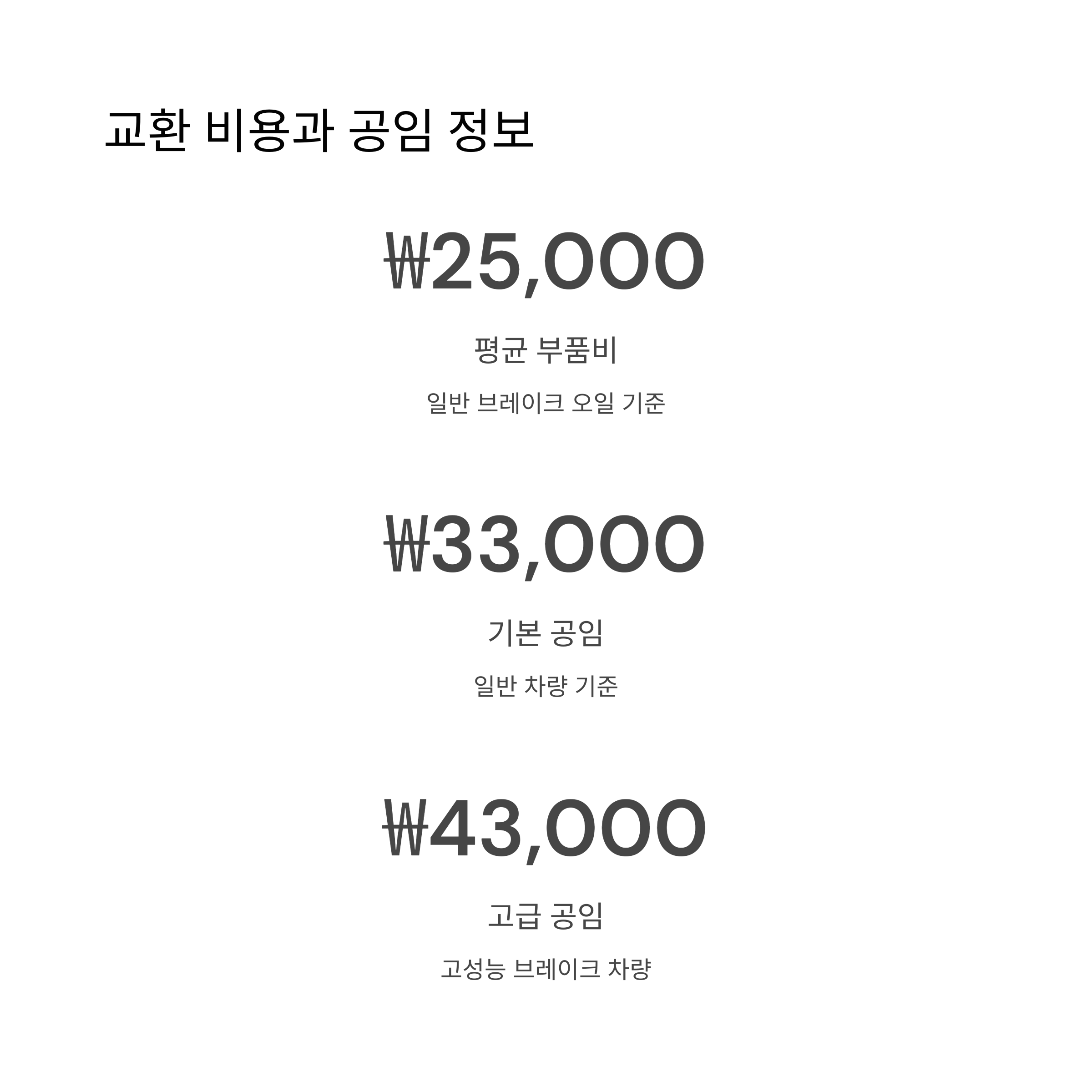 | 브레이크 오일 교환 비용 (일반) | 약 33,000원 |
