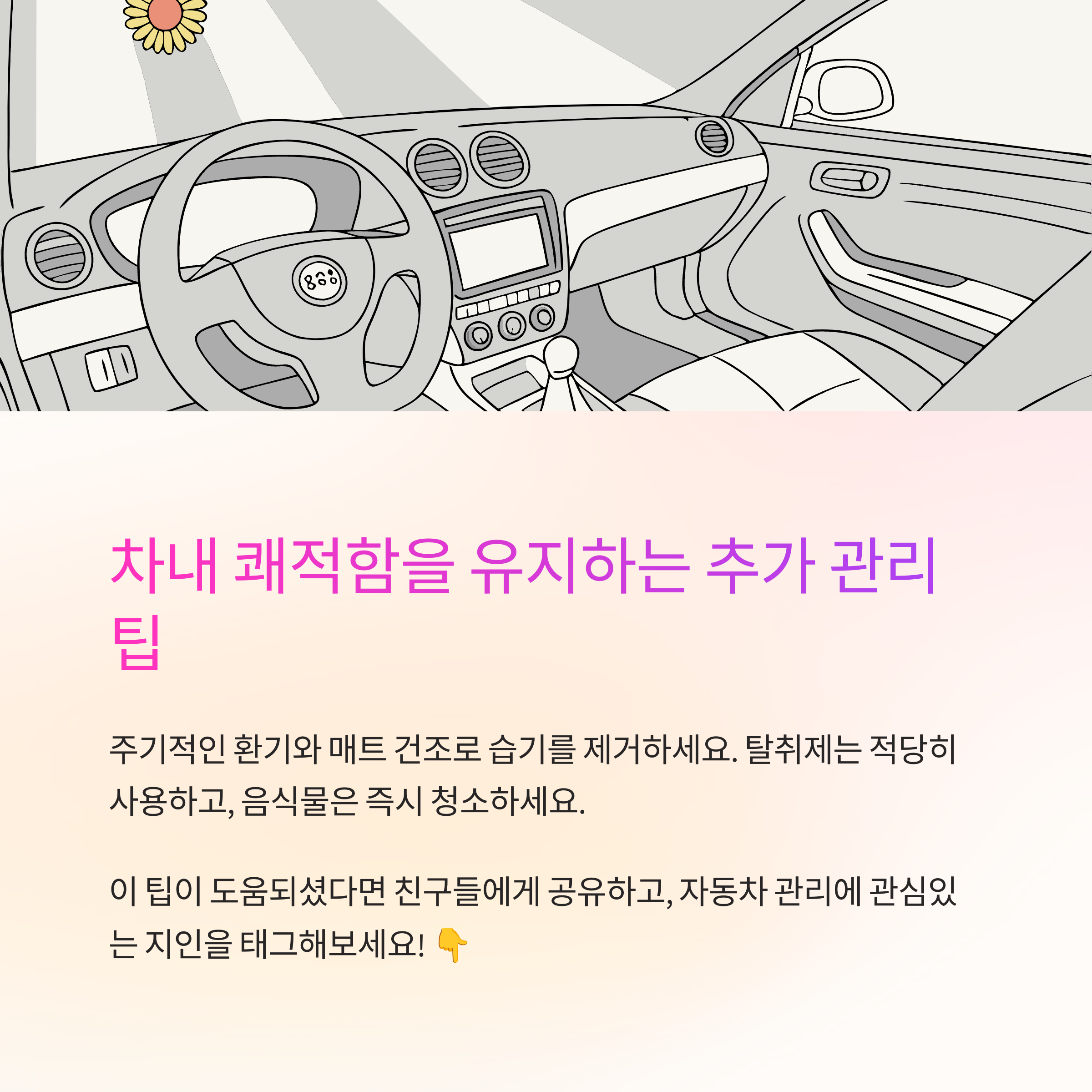 "작은 습관 변화가 쾌적한 차 안 환경을 만듭니다" 🧹