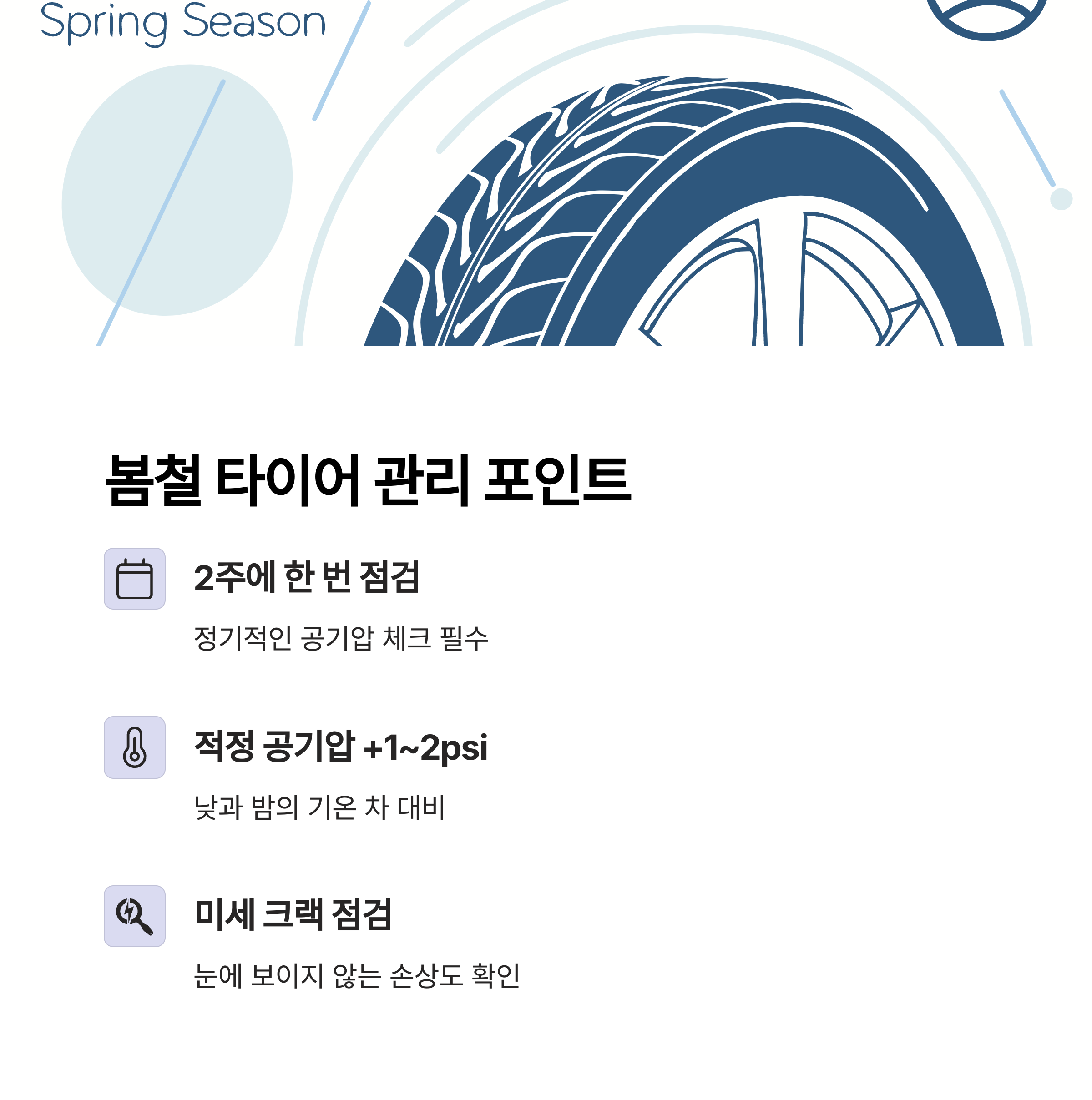"환절기에는 타이어 건강 체크가 타이어 수명을 결정짓습니다."