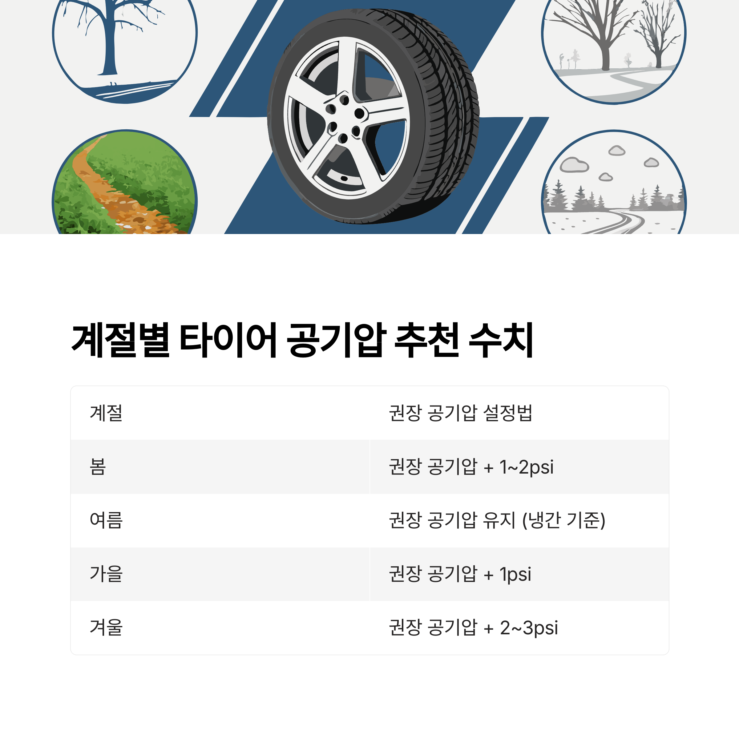 계절별 타이어 공기압 추천 수치 한눈에 보기