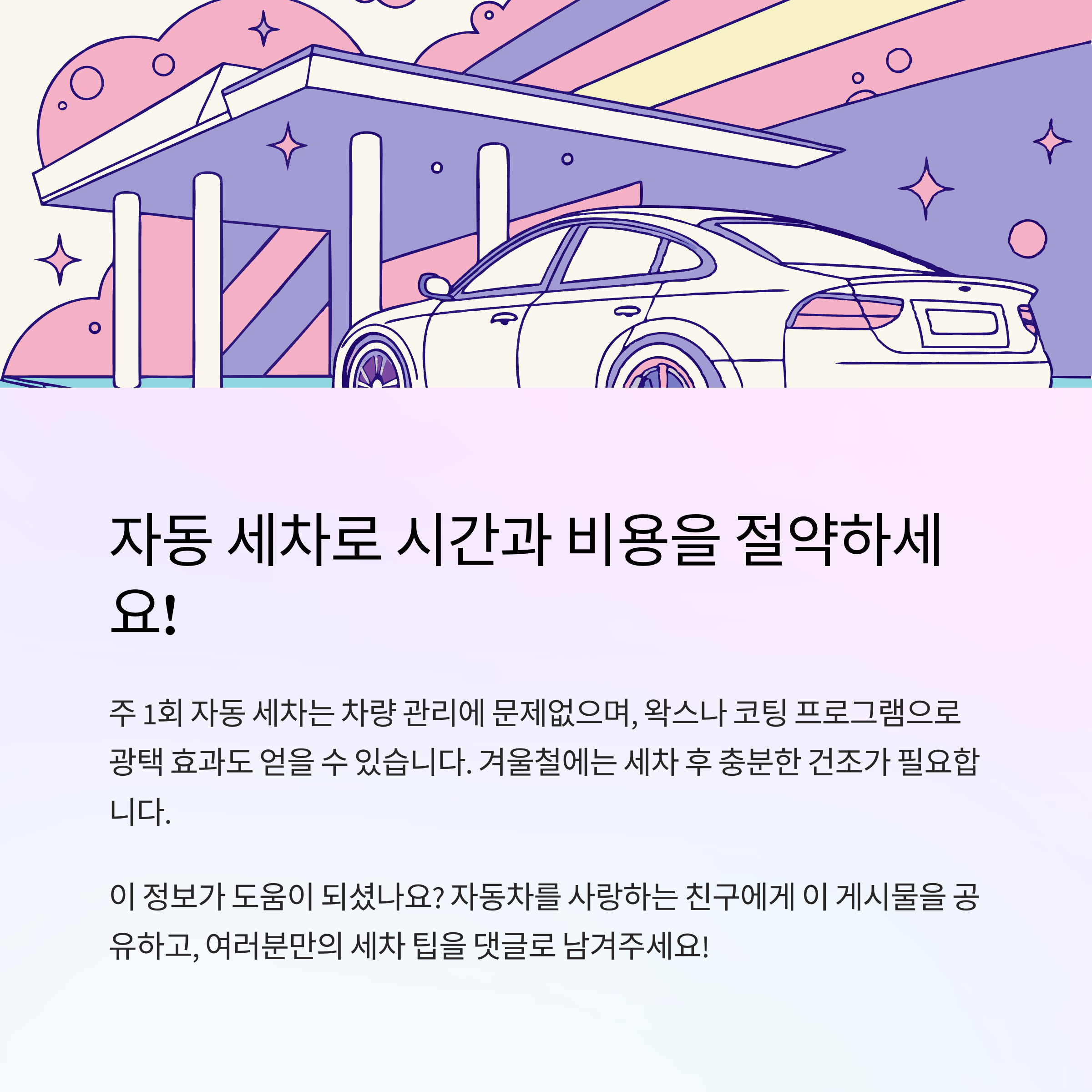 이처럼 바쁜 일상 속에서도 자동 세차는 시간을 아껴주는 최적의 선택이 될 수 있습니다.
