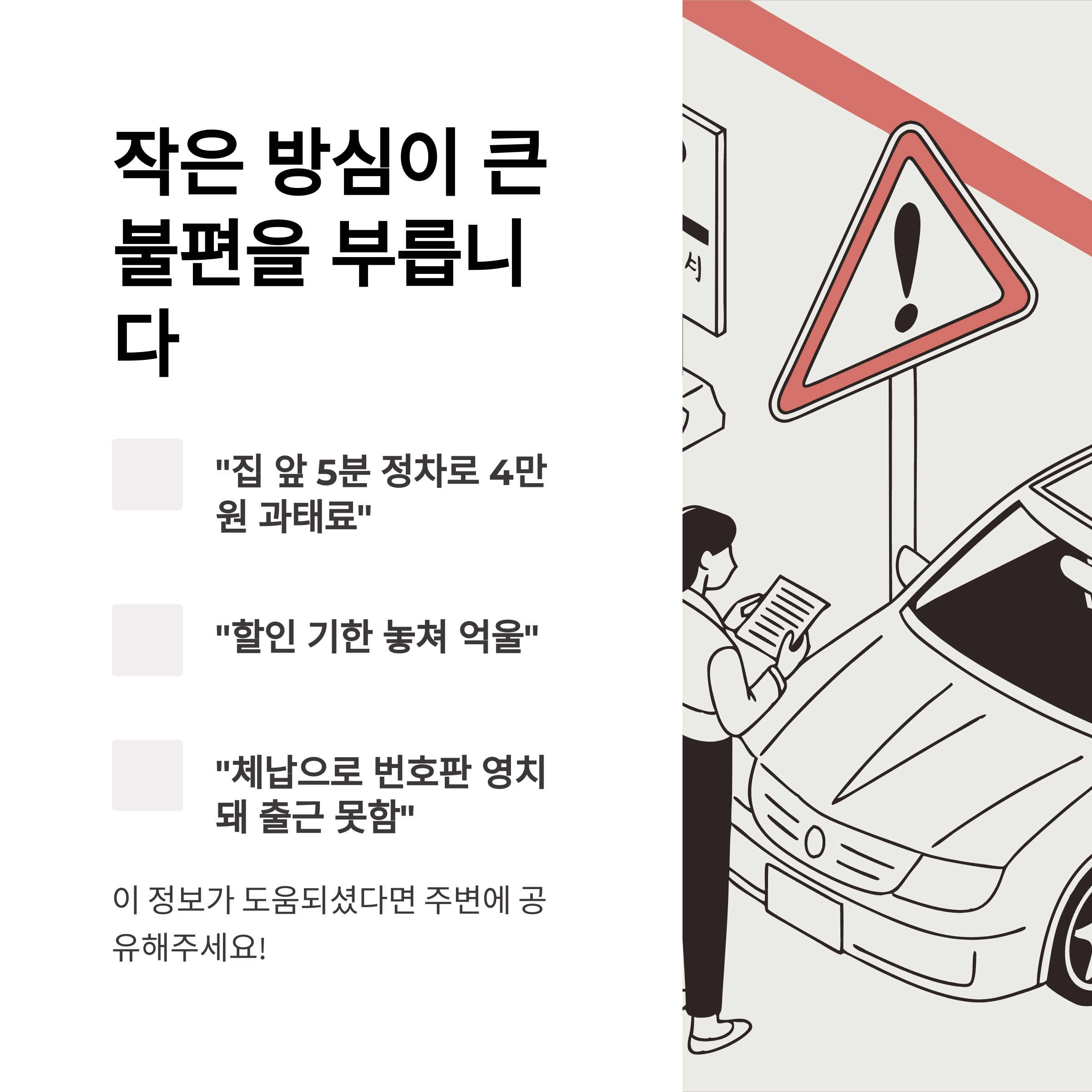 "가볍게 넘긴 주차 딱지, 결국 차량 운행 자체가 불가능해질 수 있습니다."
