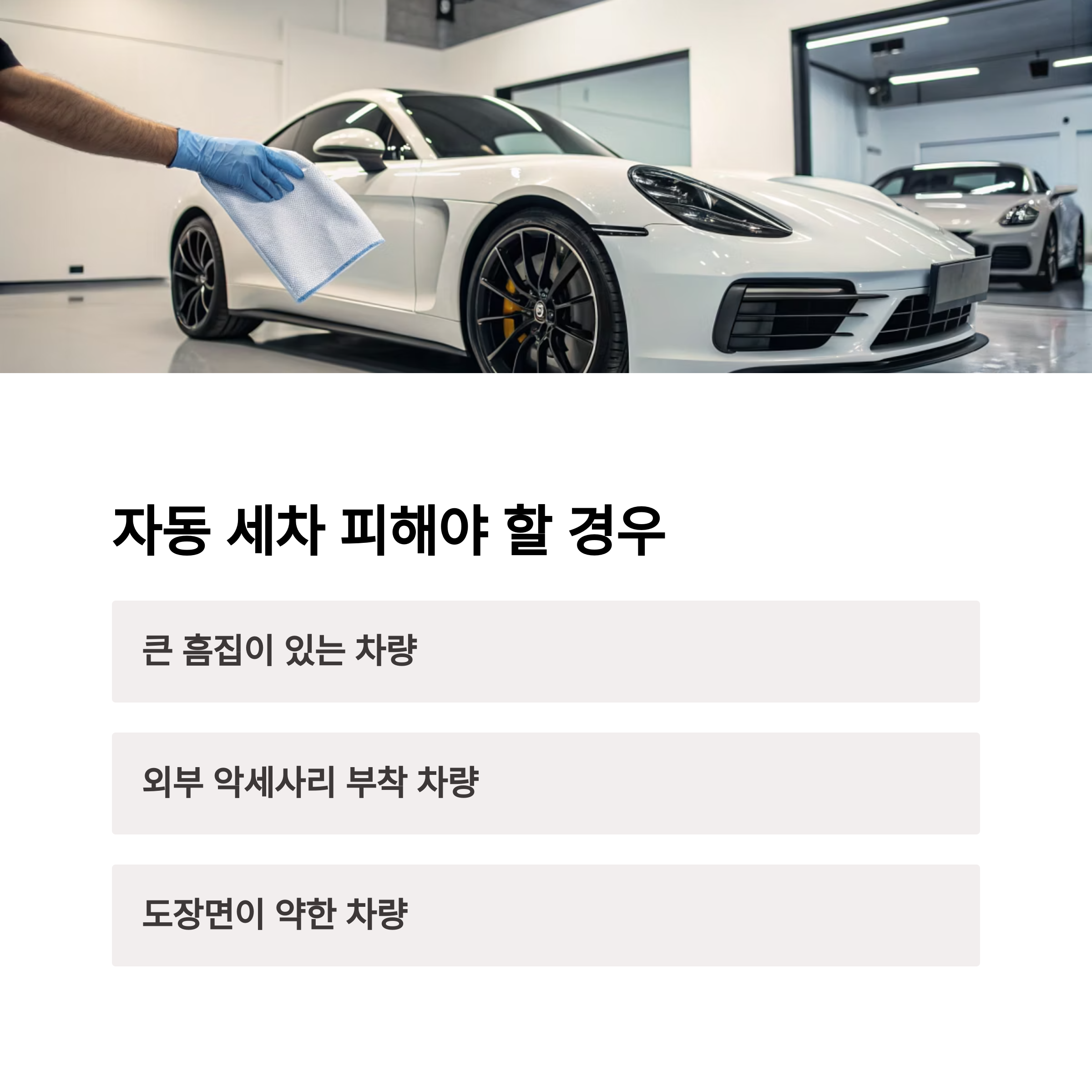특히 다음의 경우는 수동 세차를 권장합니다.