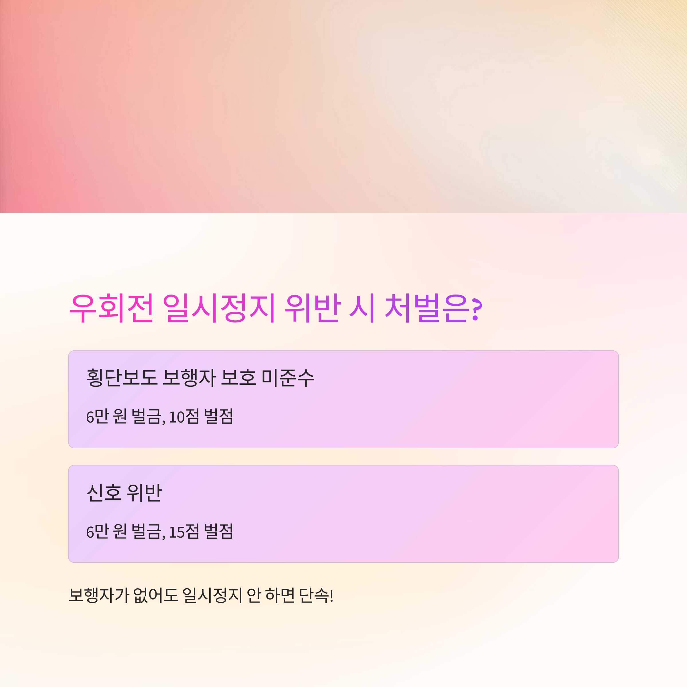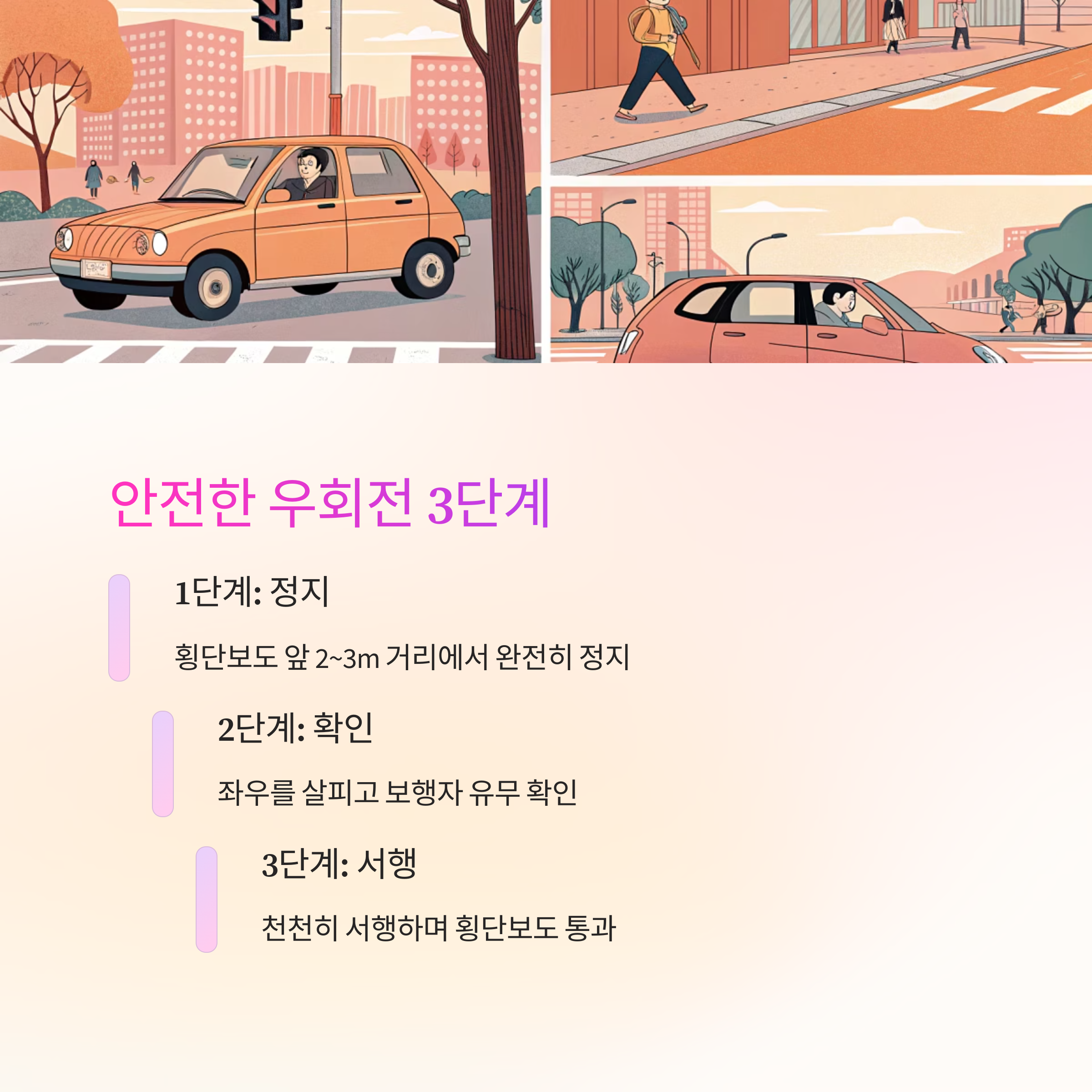 이제는 우회전 시 일시정지는 선택이 아닌 의무이며, 법으로 강제된 기본 수칙입니다.