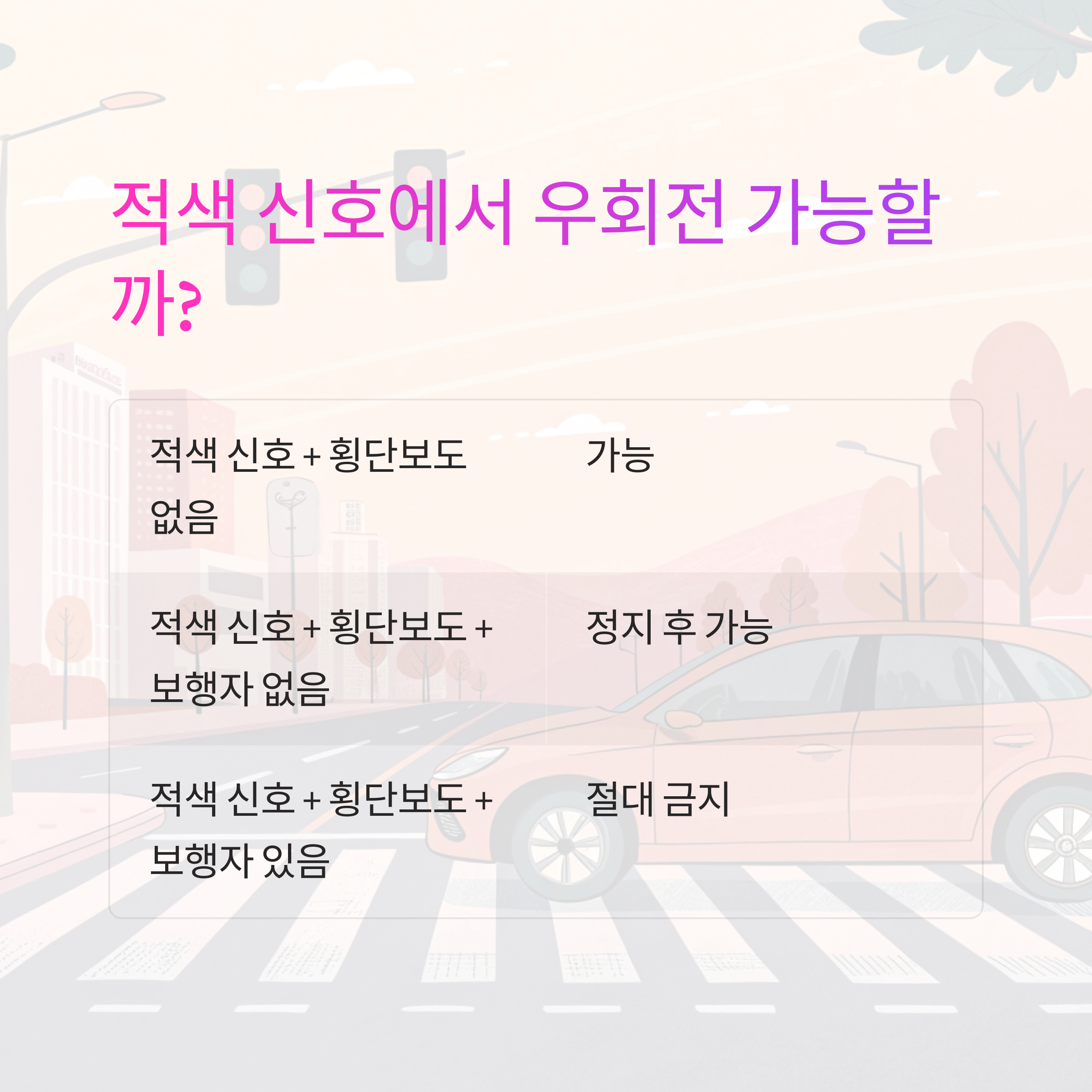 적색 신호 시 우회전은 '원칙적으로 가능'하지만, 예외 조건이 많습니다.