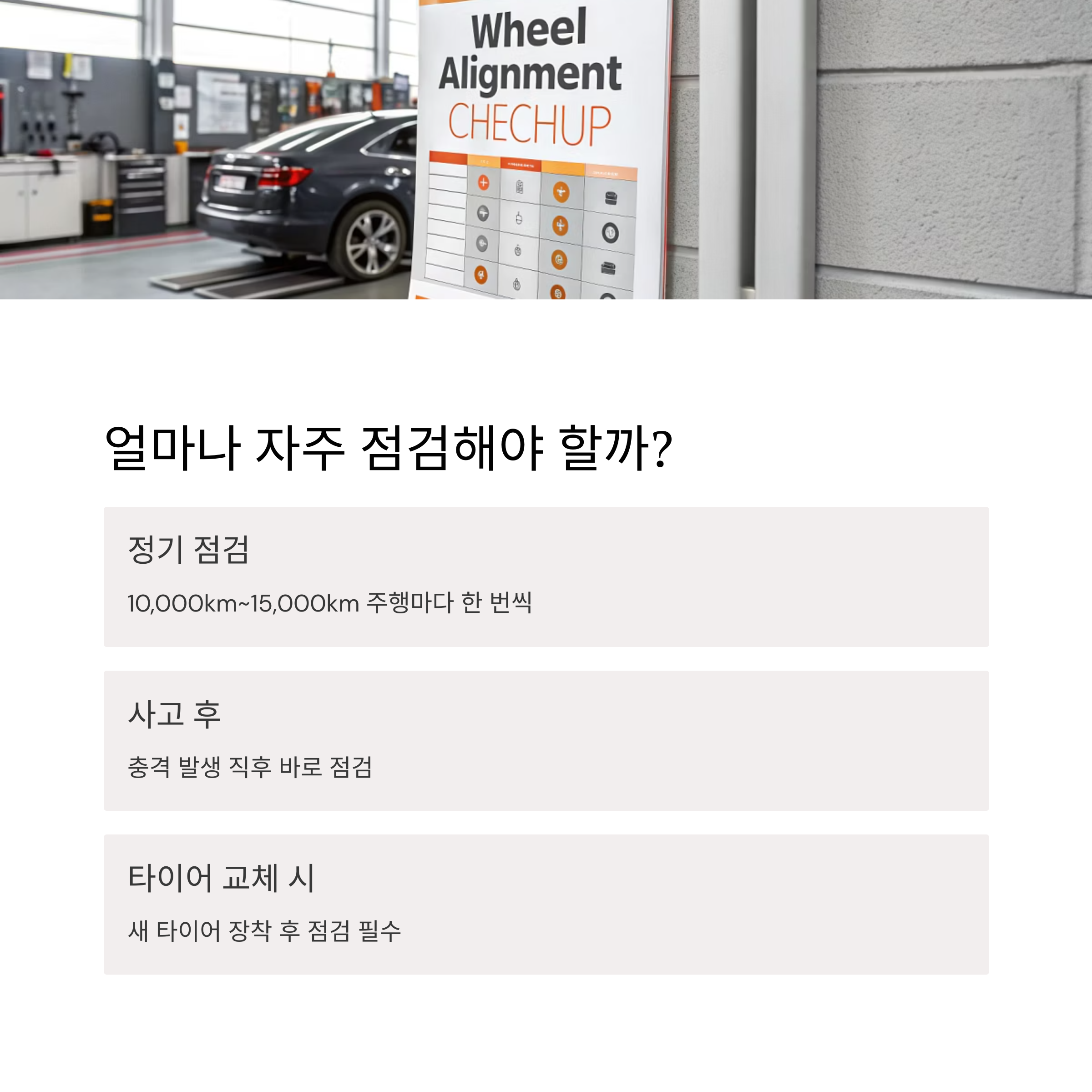 핵심: 잦은 충격이 쌓이면 얼라인먼트가 조금씩 어긋나게 됩니다.