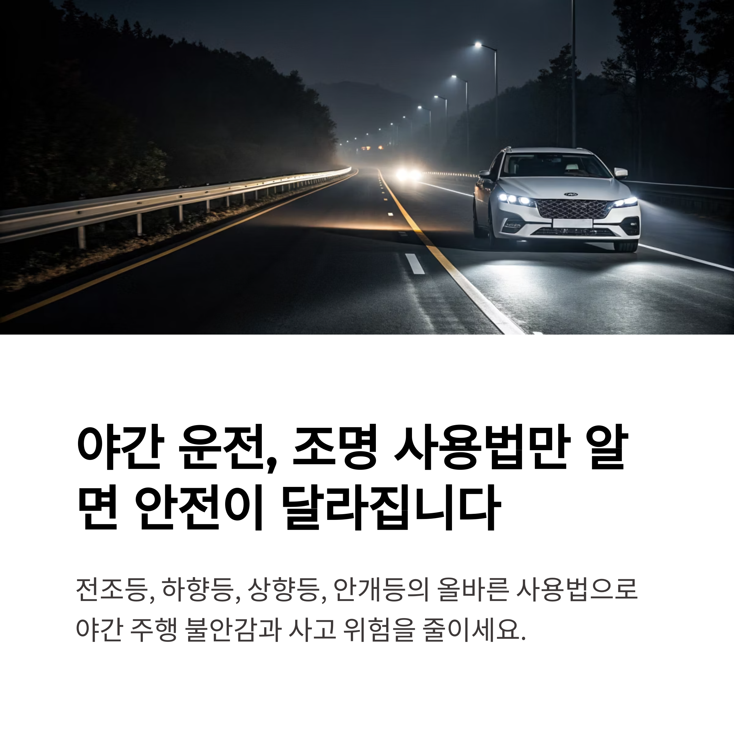 야간 운전 시 조명은 단순한 기능이 아닌 생명과 직결된 장비입니다.