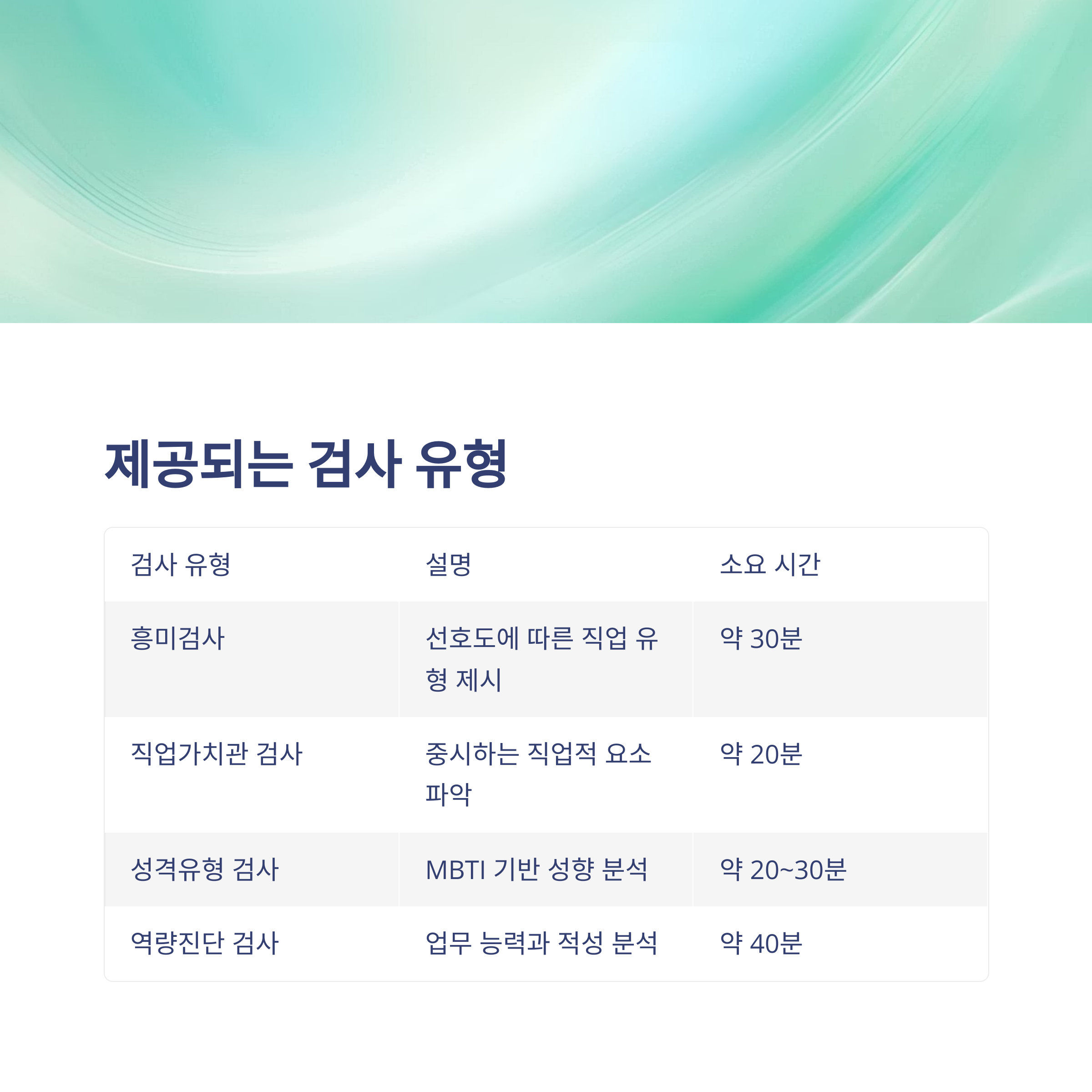 이 검사는 재취업활동 실적으로 인정되며, 구직자의 자기이해도 향상에도 도움을 줍니다.
