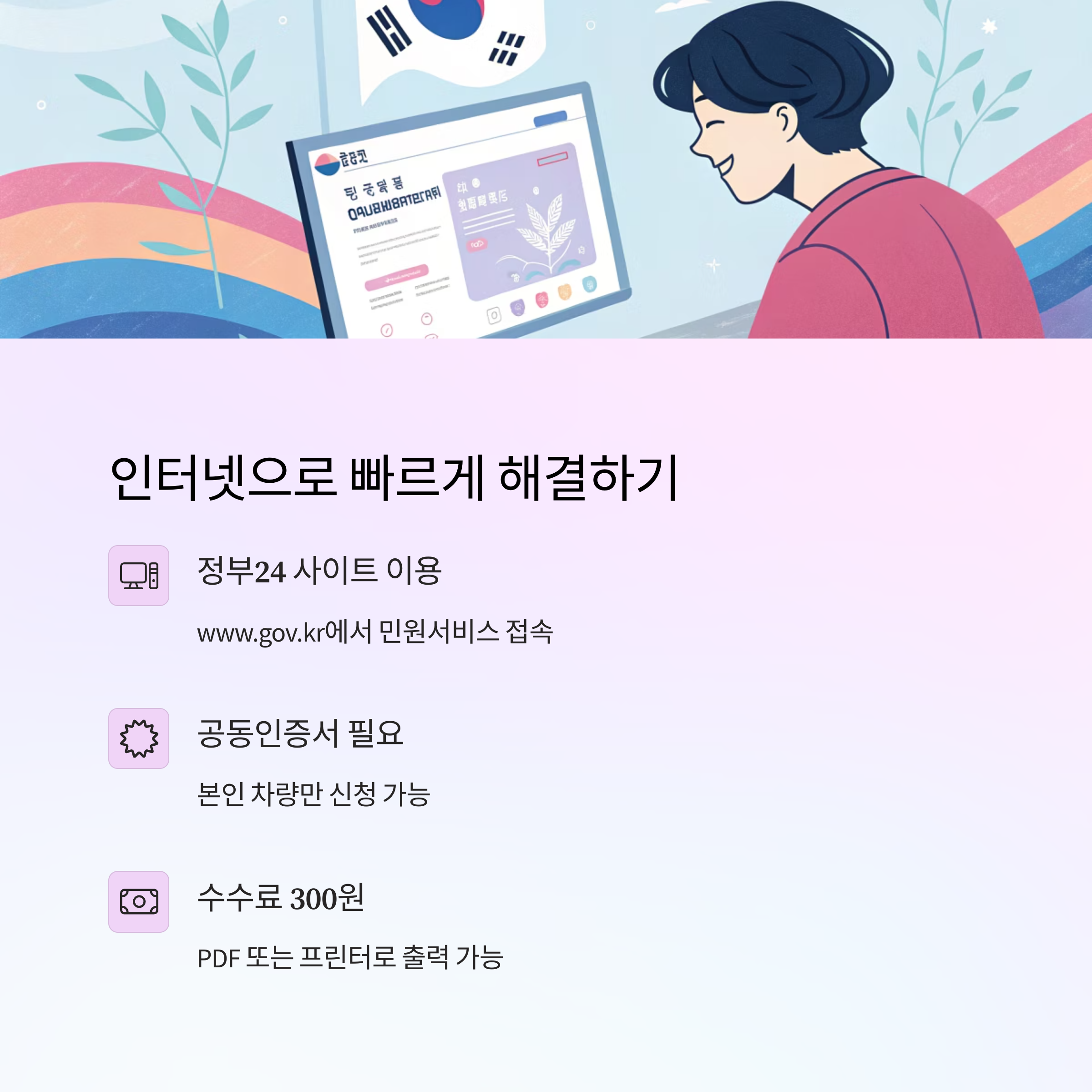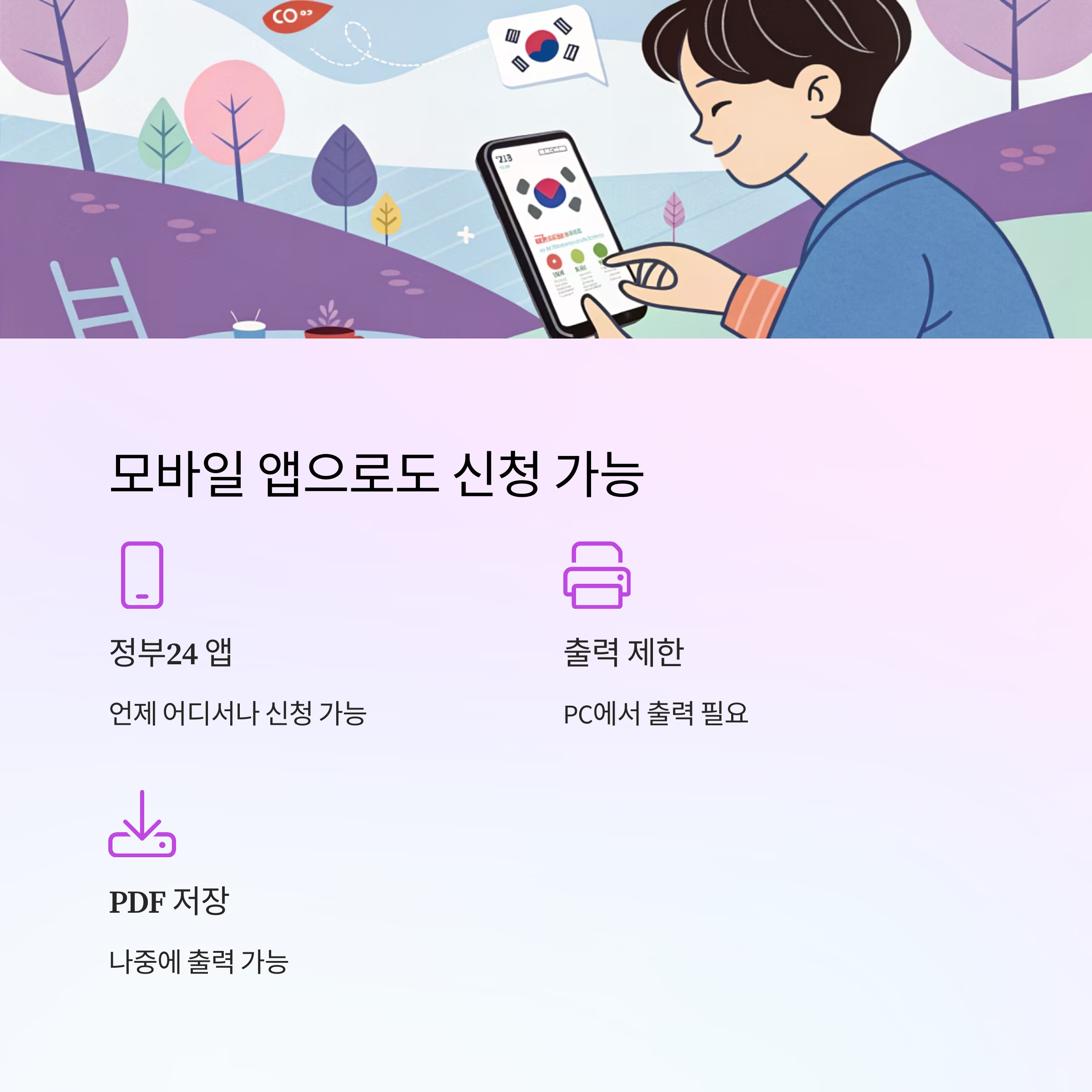 "신청은 모바일, 출력은 컴퓨터로"라는 점을 기억하세요.