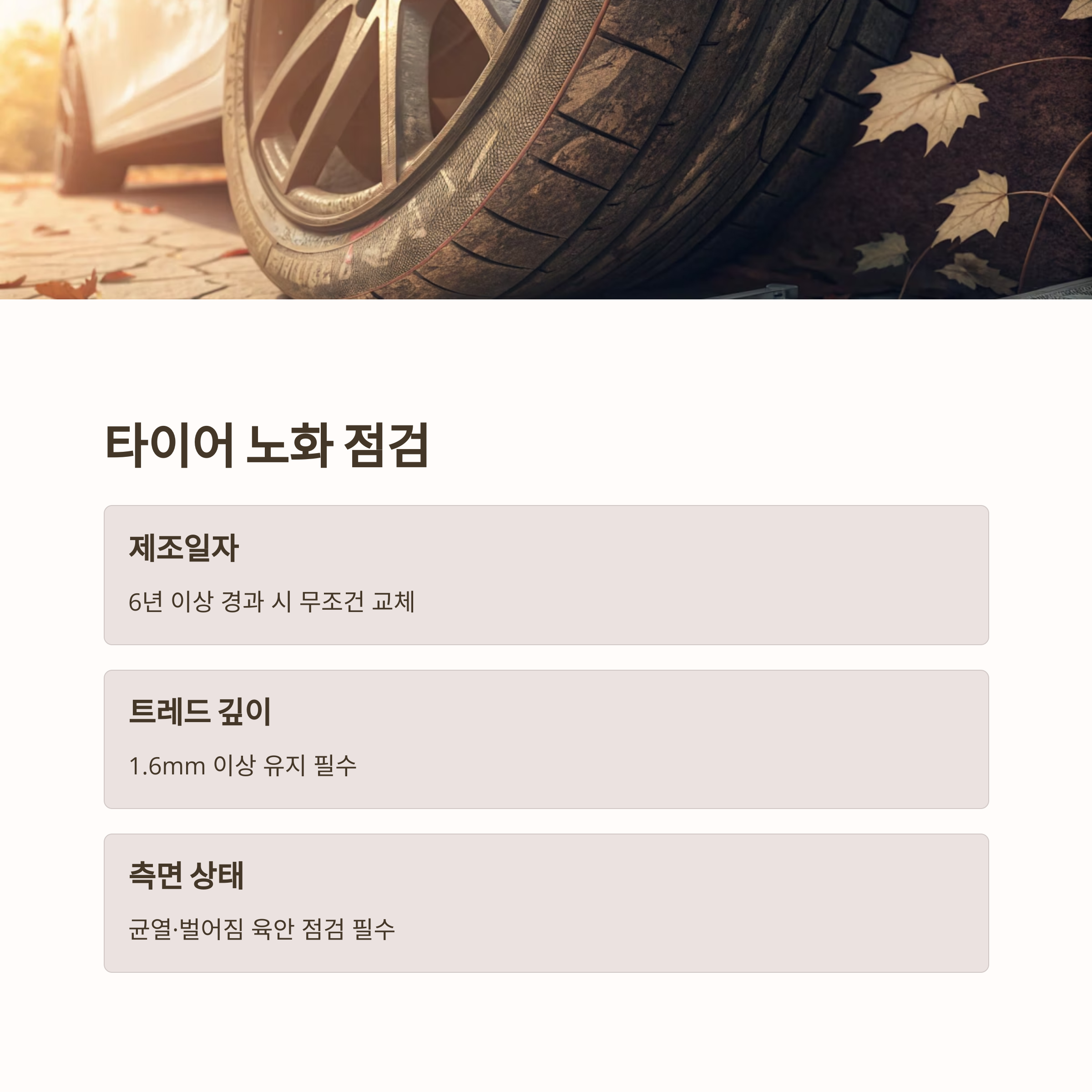 | 트레드 깊이 | 1.6mm 이상 | 마모 한계선 확인 |